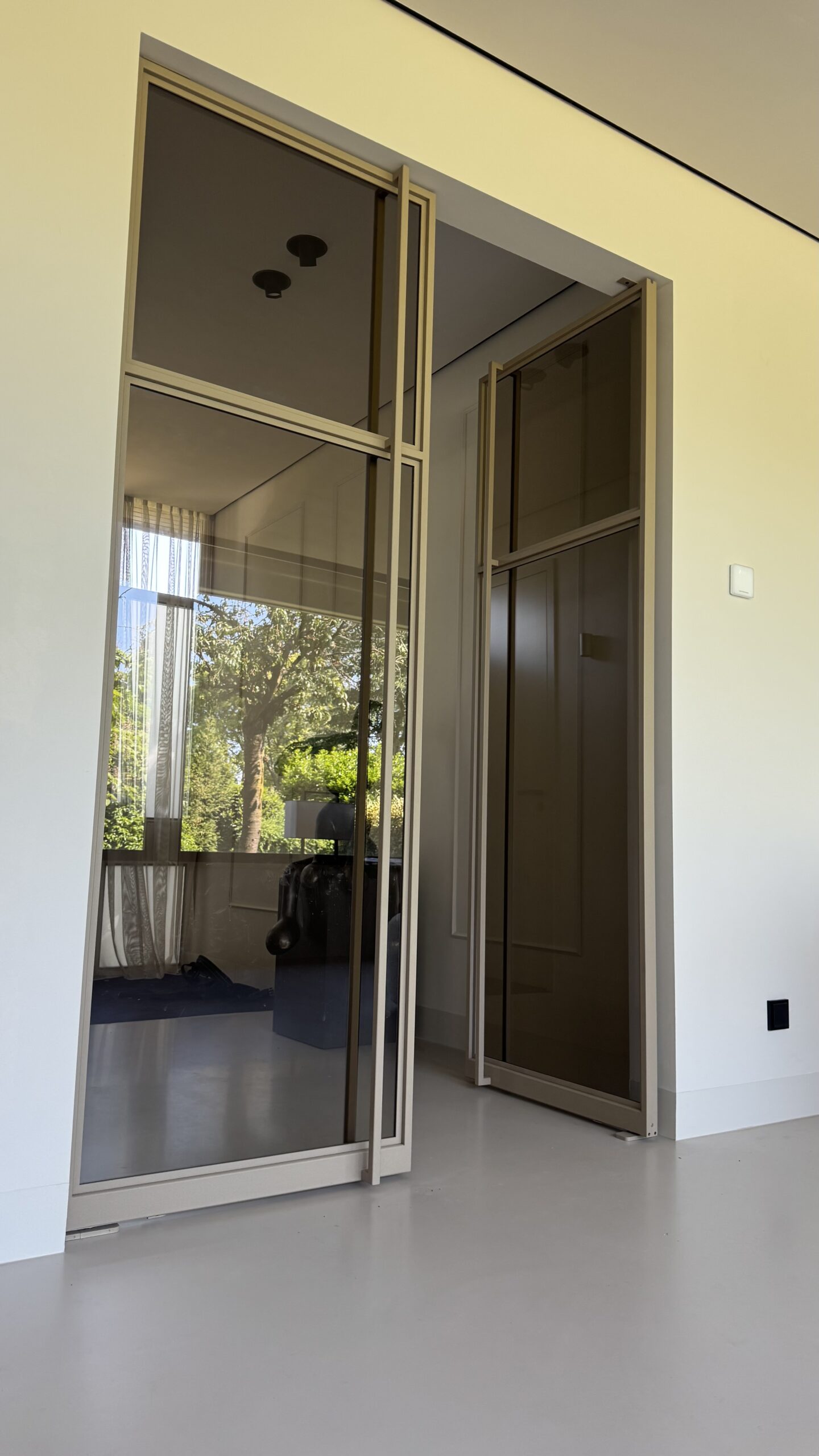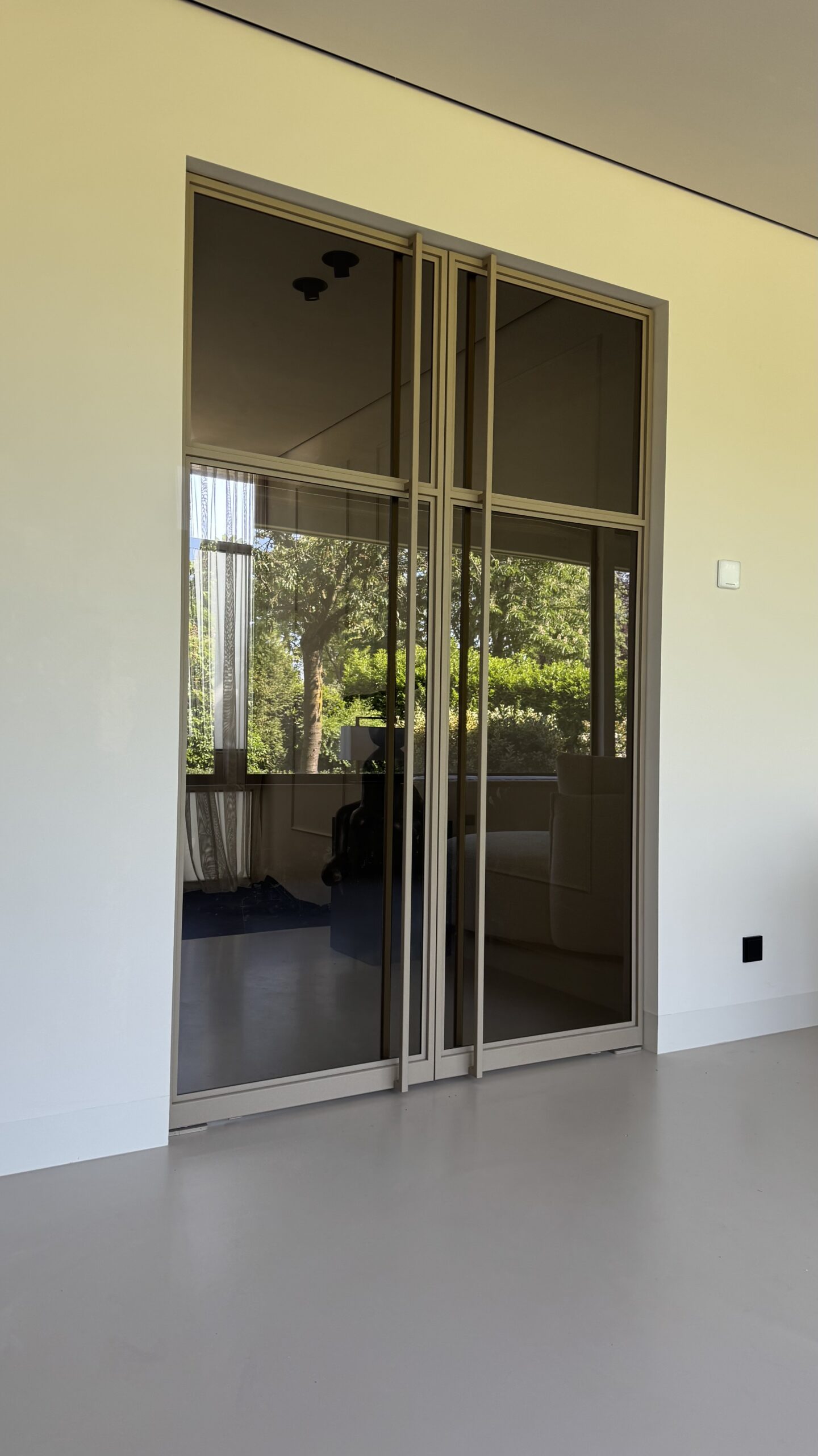 In dit woonhuis in Eindhoven zie je de taatsdeuren die wij geplaatst hebben. Het zijn hoge taatsdeuren in de kleur brons met smoke glas.